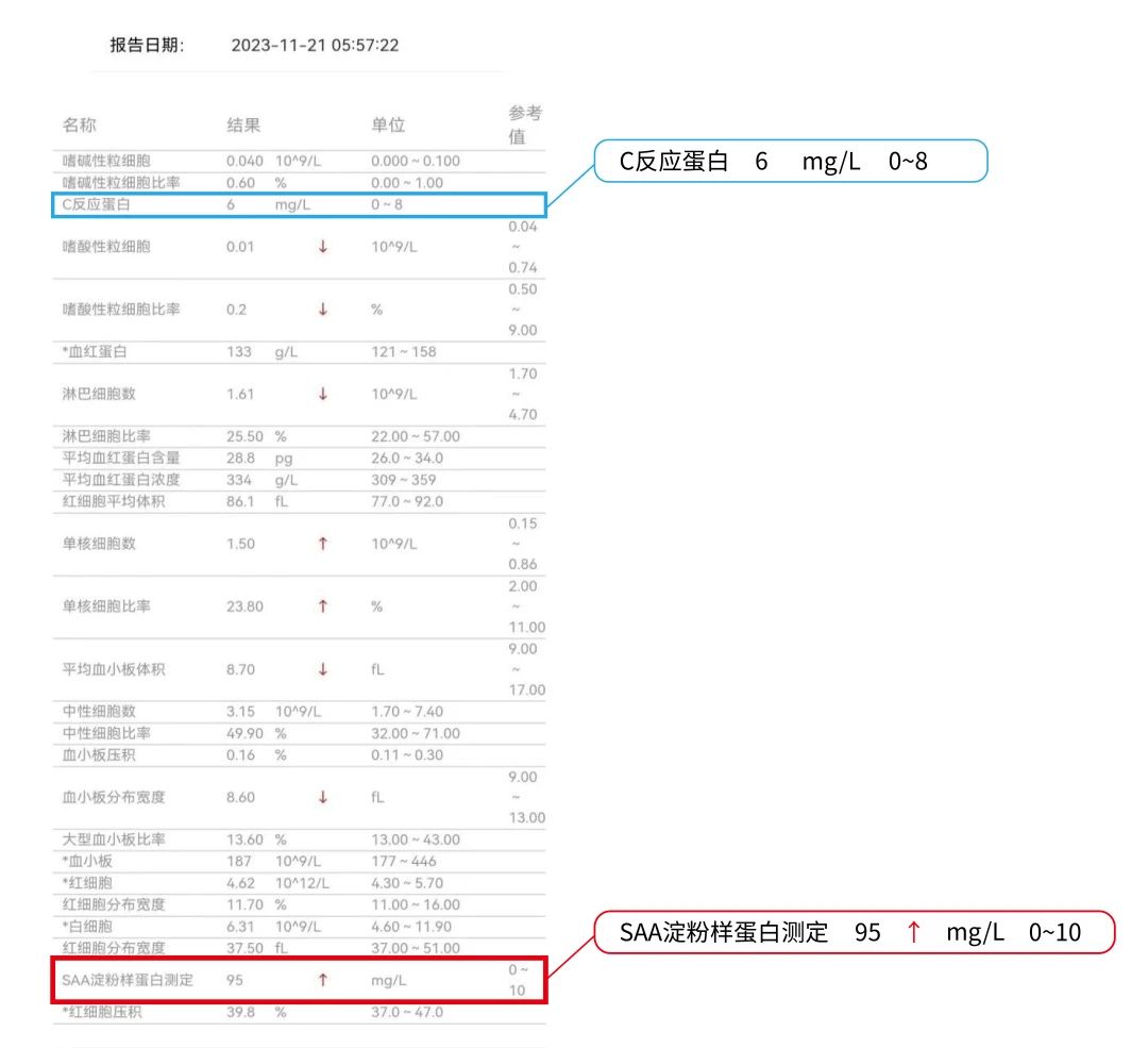 在常见的血液检测指标中,除通例的血通例、C反应卵白(CRP)检测外,另一炎症指标——血清淀粉样卵白A(SAA)的检测在该类疾病的诊疗中敏感性备受关注。