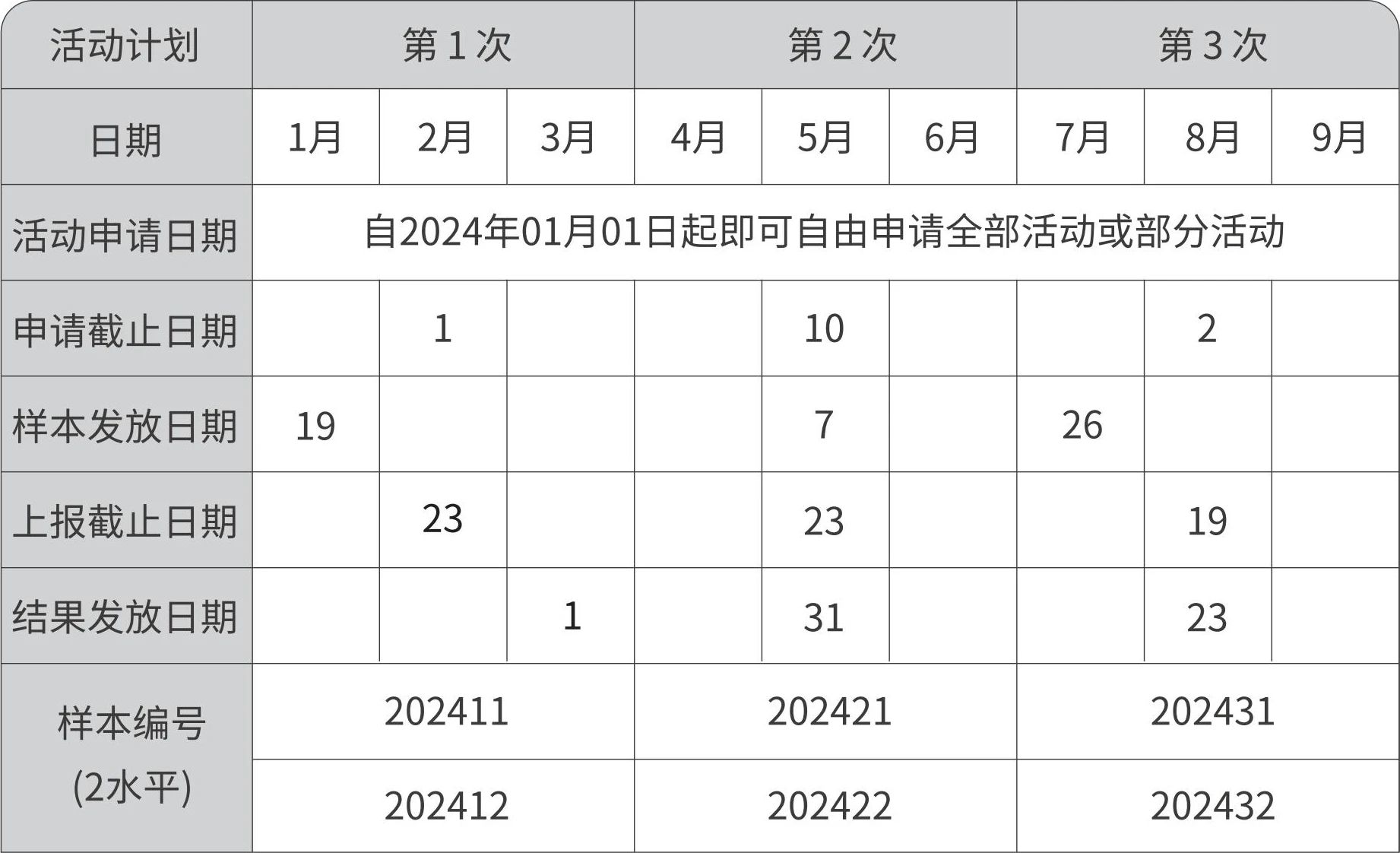 (1) 2024ÄêÖÊÁ¿ÆÀ¼ÛÔ˶¯ÉêÇëÈÕÆÚΪ×Ô֪ͨ·¢³öÖ®ÈÕÆðÖÁ2024Äê09ÔÂ01ÈÕ£¬¸÷²ÎÆÀʵÑéÊÒÓ¦ÔÚ×èÖ¹ÈÕÆÚÌõ¼þ³öÉêÇë¡£