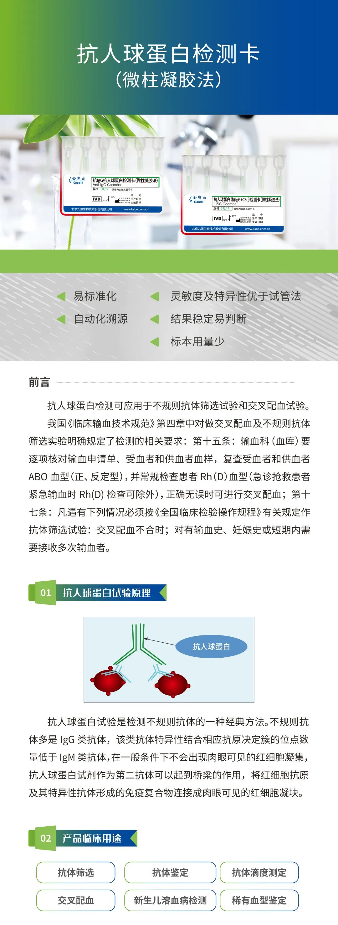 本产品用于间接抗人球卵白试验,用于交织配血,仅用于临床磨练,不必于血源筛查。